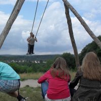 Während das Exploramuseum (siehe Foto) v. a. optische Sinnestäuschungen, -wahrnehmungen und -entdeckungen bereithielt, bot das Schloss Freudenberg darüber hinaus die Gelegenheit, aktiv Erfahrungen u. a. im Bereich des Tast- und Gleichgewichtssinns zu machen. Ein Barfußlehrpfad im Wald mit verschiedenen Untergründen und Hindernissen, auf denen bzw. über die hinweg die Schülerinnen und Schüler mit verbundenen Augen – unterstützt von ihren (sehenden) Mitschülerinnen und Mitschülern – wandeln konnten und die „Riesenschaukel“ des Schlosses (siehe Foto) verlangten dabei zudem Kooperationsbereitschaft. Das Dialogmuseum ermöglichte eine Sinneswahrnehmung der besonderen Art: In völliger Dunkelheit konnten Schülerinnen und Schüler – geführt von einer blinden Begleitperson – Alltagssituationen (z. B. Erlebnisse in Natur, Straßenverkehr oder in einem Restaurant) aus der „Sicht“ eines Blinden erleben.