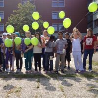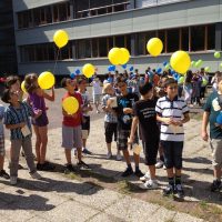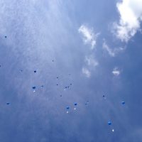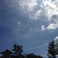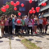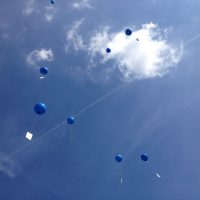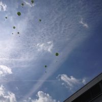 Mit viel Freude ließen die Klassen nacheinander ihre Luftballons aufsteigen, behielten sie so lange im Auge, bis sie am prächtig blauen Horizont verschwanden und so mancher Wunsch für eine möglichst lange Reise wurde ihnen mit auf den Weg gegeben.