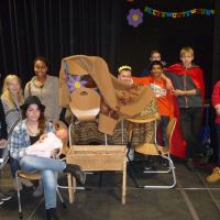 Die Schülerinnen und Schüler führten unter der Anleitung von Fr.Winkel und Pfarrer Matthei Szenen zur Weihnacht auf.