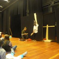 Zunächst stand am 28.11.13 ein ‚szenischer Workshop‘ an: Hier wurden die SchülerInnen selbst zu Akteuren und studierten Szenen aus ‚Tosca‘ ein.