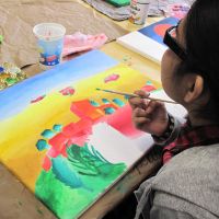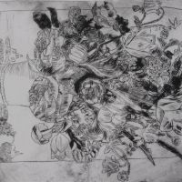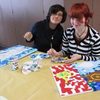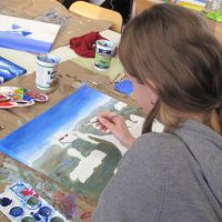 zu sehen sind: Kaltnadelradierungen, Tonarbeiten und Acrylmalerei: