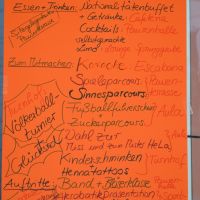 Für das leibliche Wohl unter dem Motto „Gesundes Essen“ sorgten ein internationales Büffet der Eltern und der Gesellschaft der Freunde, Smoothies und eine alkoholfreie Cocktailbar. Da das Schulfest unter dem Motto „Gesunde Schule“ veranstaltet wurde, boten wir keine der üblichen Softdrinks an – was bei der Vielfalt des Angebots nicht vermisst wurde.