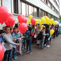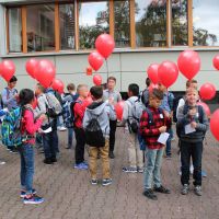 Nach dem ersten Kennenlernen in den neuen Klassen fand wie jedes Jahr ein Luftballonwettbewerb statt, dessen Sieger bei der Frühlingsfeier verkündet werden.