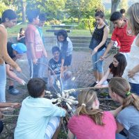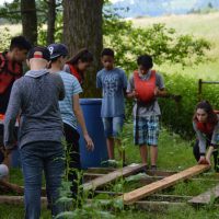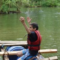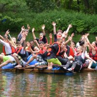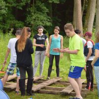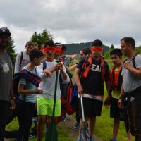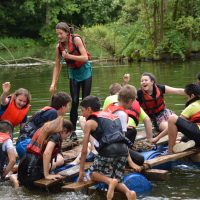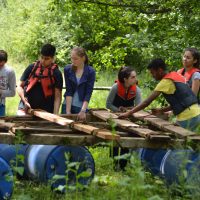 Am Mittwoch wanderten wir mit zwei Begleitern, Peter und Miriam, zu einem Teich, wo die Schüler in zwei Gruppen mit Brettern, Tonnen und Seilen Flöße bauen sollten, ein riesiger Spaß – der von Erfolg gekrönt war! Am Ende hatten alle auf den Flößen Platz.