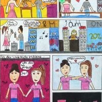 Auch dieses Jahr freute sich die Fachschaft Kunst darüber, die Schülerarbeiten aus dem Kunstunterricht beim Tag der offenen Tür auszustellen. Die Besucher und die Schulgemeinde der HeLa konnten Werke aus den Jahrgangsstufen 5 bis 9 betrachten. Es wurde eine bunte Vielfalt geboten: detailreiche Sprühtiere, Zirkusartisten, Fabelwesen in Wäldern, Portraitdarstellungen mit Snapchat-Filtern und als Blindzeichnungen, Collagen, Graffiti, Höhlenmalereien, Farbstudien, Linoldruck, Marionetten-Bilder, phantasievolle Muster, abwechslungsreiche moderne Stillleben, spannende Comic-Seiten und bunte Wunderlandfiguren. Eine Auswahl dieser Werke sind hier auf der Homepage zusehen.